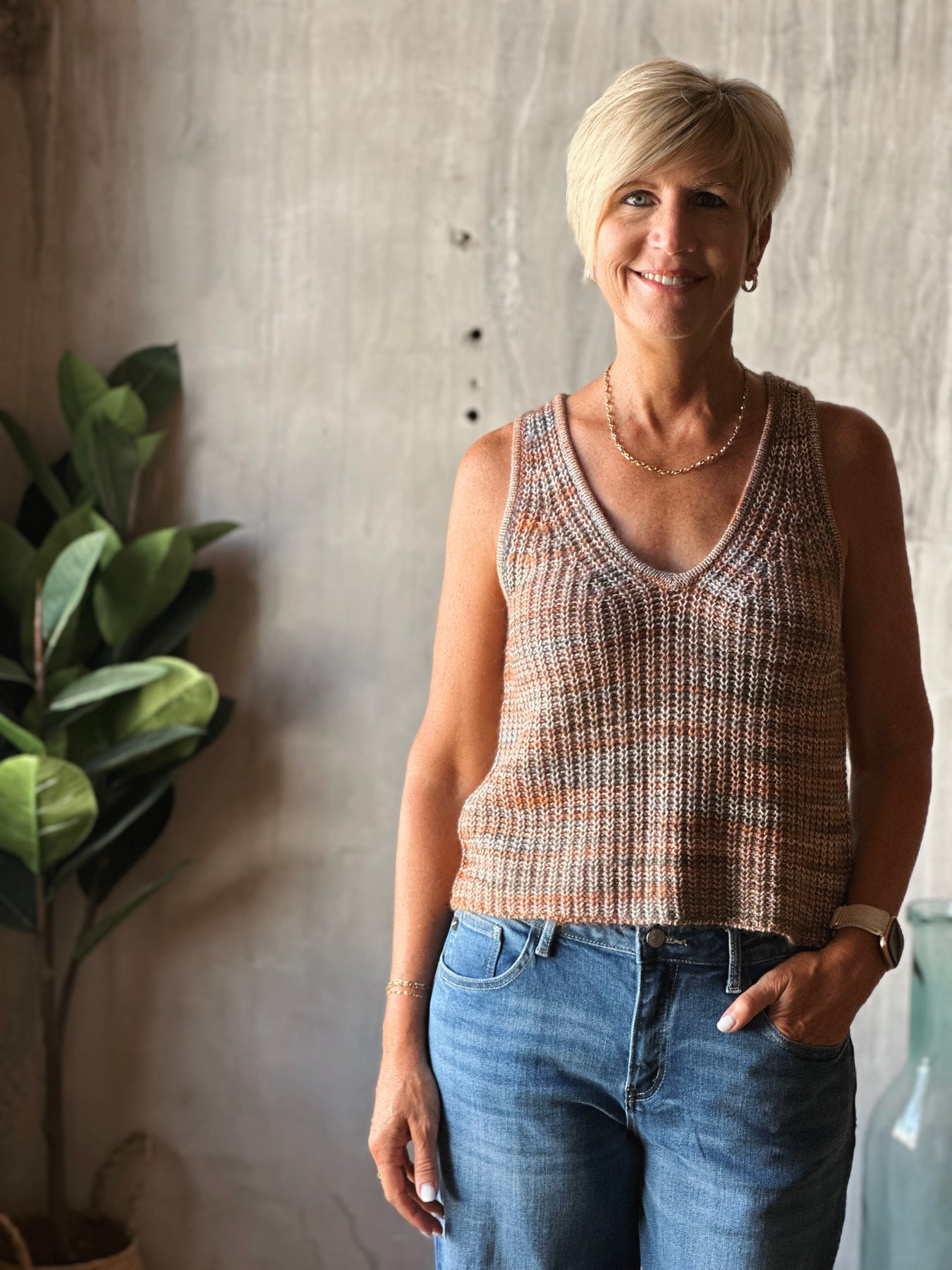 Product Description – Sleeveless V-Neck Sweater Top (Earthy Tones)