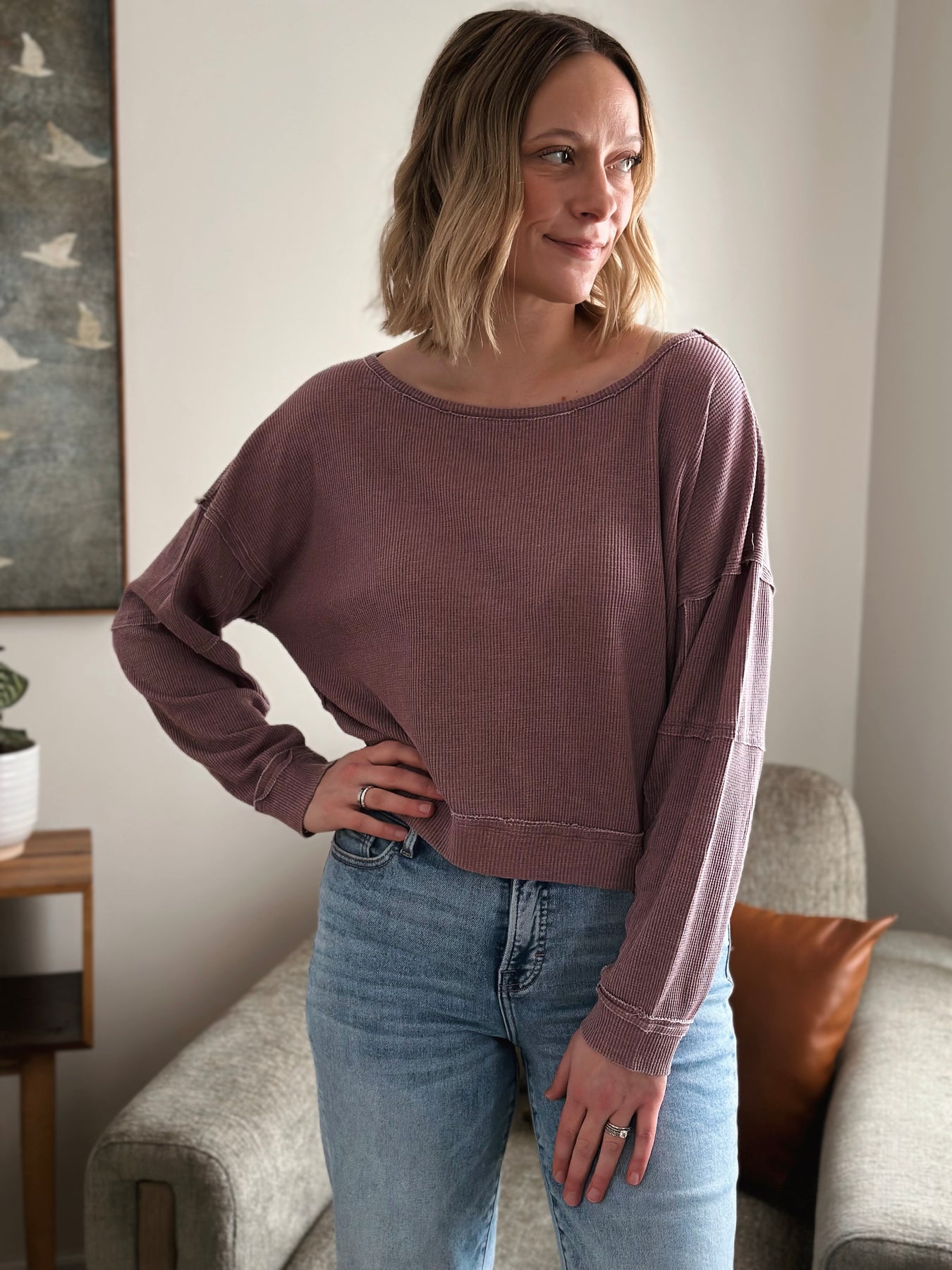 This is that perfectly undone layer you throw on when you want to look effortlessly put together. The Easy Fix Boatneck Pullover blends casual comfort with subtle edge, thanks to its mineral-washed finish, textured waffle knit, and raw seam details. It feels soft, worn-in, and easy from the first wear—exactly the kind of piece that fixes an outfit without overthinking it.