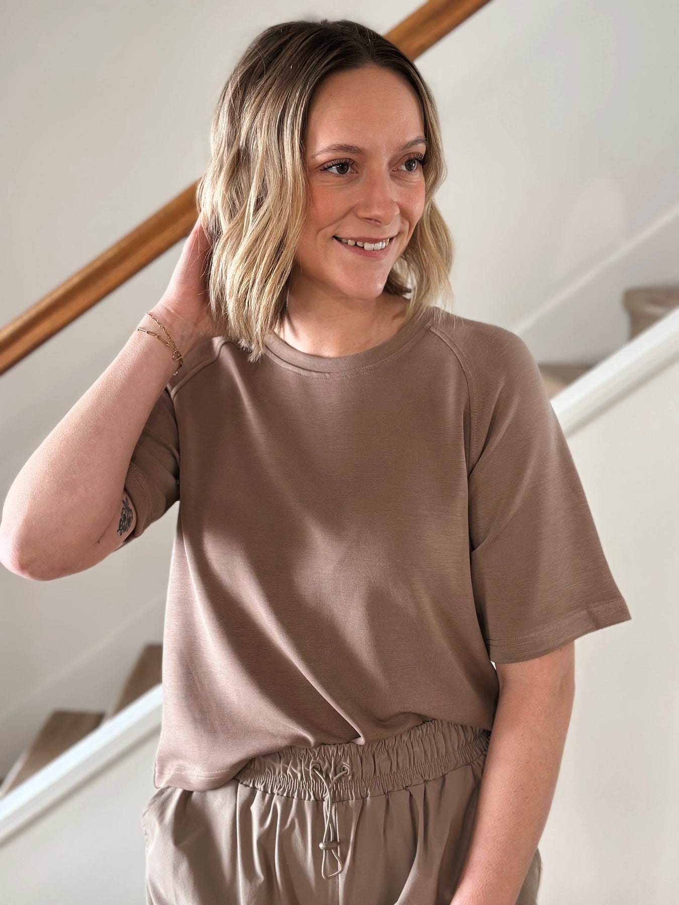 This tee feels so good — soft, drapey, and easy in all the right ways. I love that it’s relaxed without looking sloppy, and the raglan sleeve makes it feel a little more special than a basic tee. Definitely a grab-and-go favorite.