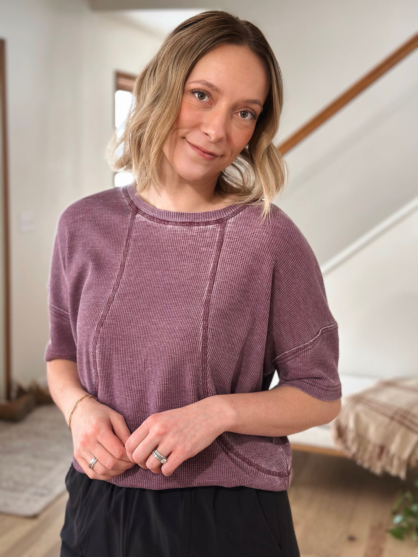 This is the kind of tee that instantly feels lived-in—in the best way. The Weekend Waffle Tee is made from a lightweight cotton-blend waffle knit with a vintage-inspired mineral wash that gives it that perfectly broken-in look and feel. Easy, breathable, and ultra-soft, it’s designed for real-life days when comfort is key but style still matters.