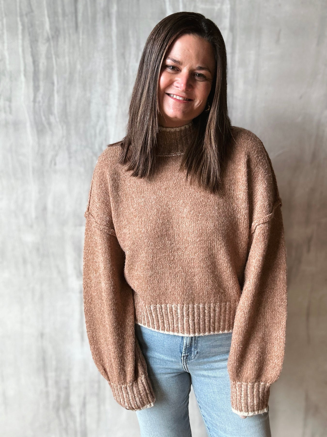 Bring a cozy pop of personality to your fall lineup with this oversized mock neck sweater. Designed with a relaxed silhouette and drop shoulders, it balances comfort with a modern, casual edge. The ribbed hem gives it structure, while the bright-toned knit adds dimension to your wardrobe. Perfect for layering or wearing solo on cooler days.