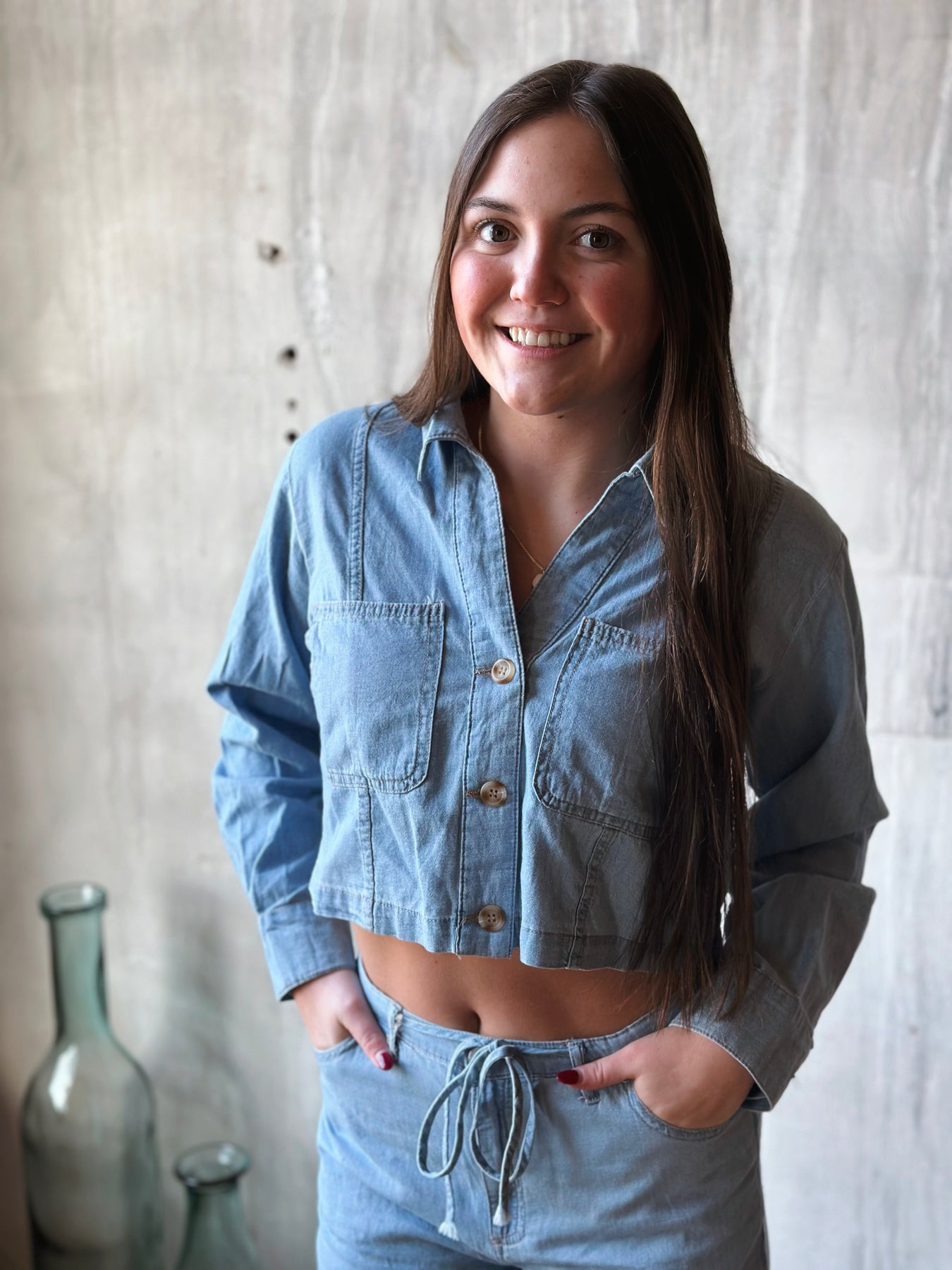 I love how versatile this top is. The drawstring hem lets you play with the shape, and the washed denim gives it that perfectly worn-in feel. Styled as a set with the Better Together Pants, it looks intentional and effortless, but it’s just as good mixed in with your everyday denim.