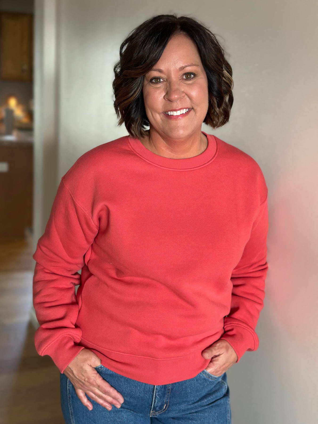 This is one of those sweatshirts you’ll reach for on repeat. The Everyday Fleece Crew is made from a classic fleece fabric with a softly brushed interior that feels cozy without being bulky. The brushed brick color adds warmth and richness, making it easy to dress up just a touch while still keeping things effortless and casual.