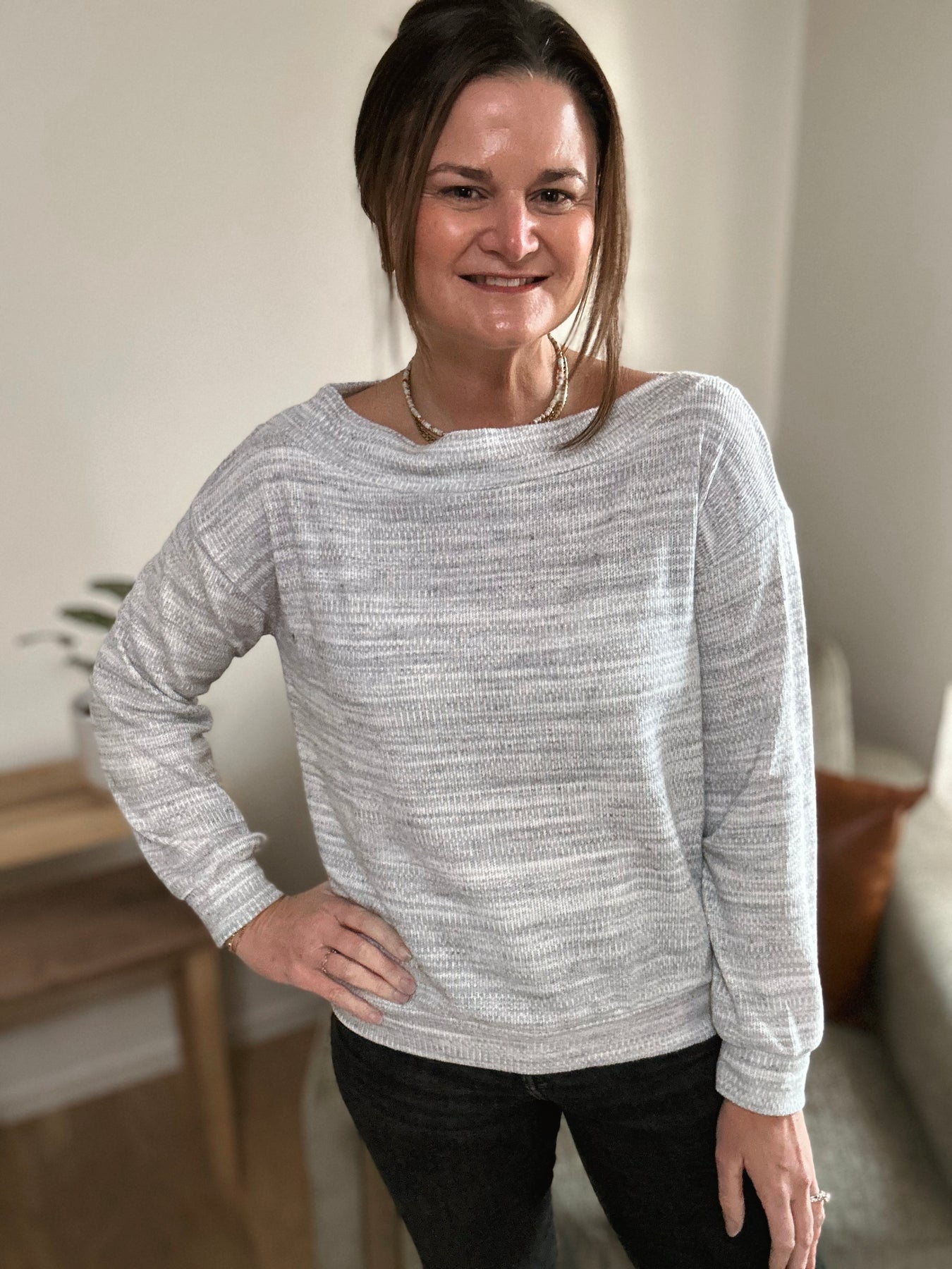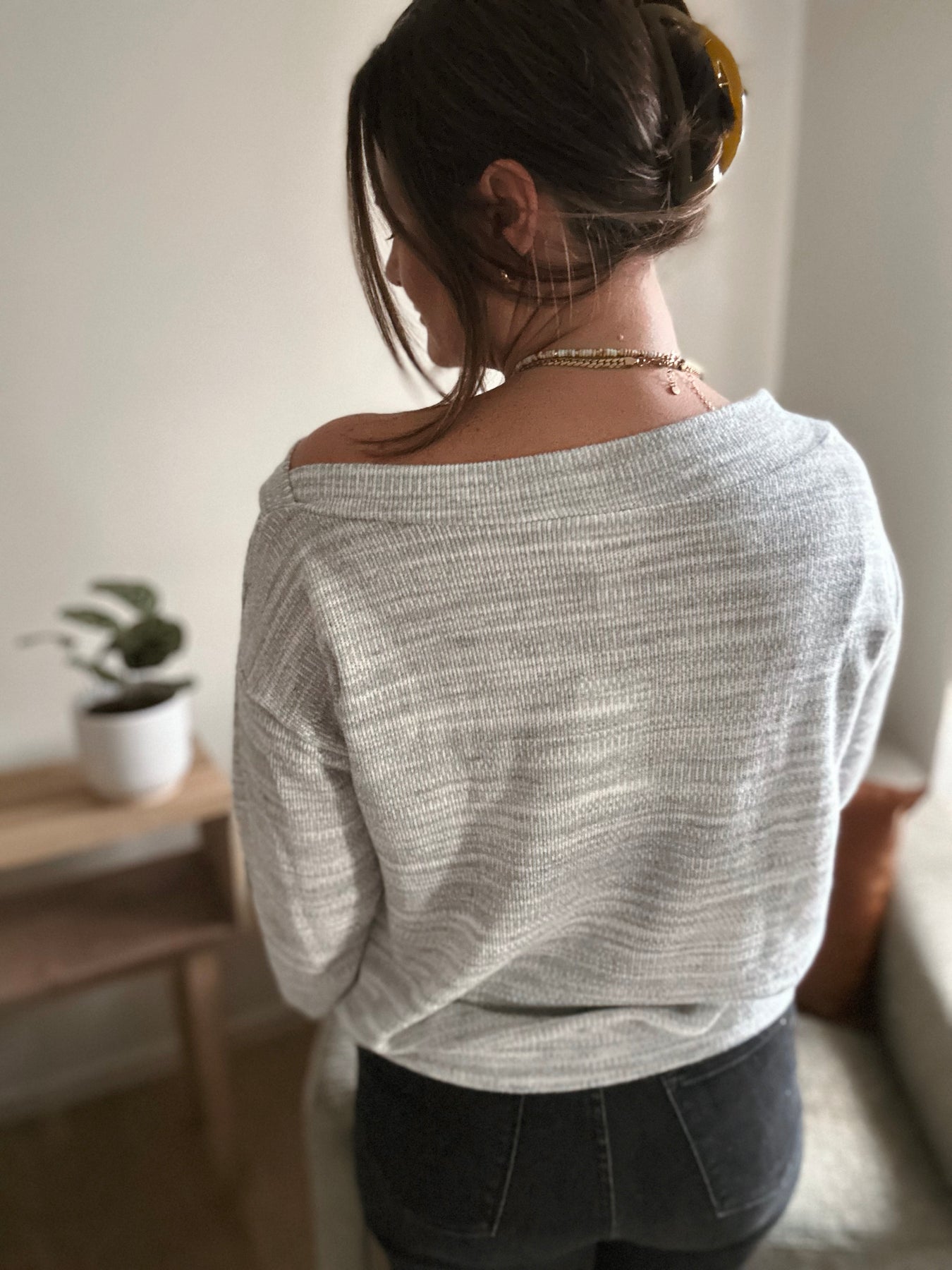 Unbalanced Off-Shoulder Long Sleeve Top – Heather Gray