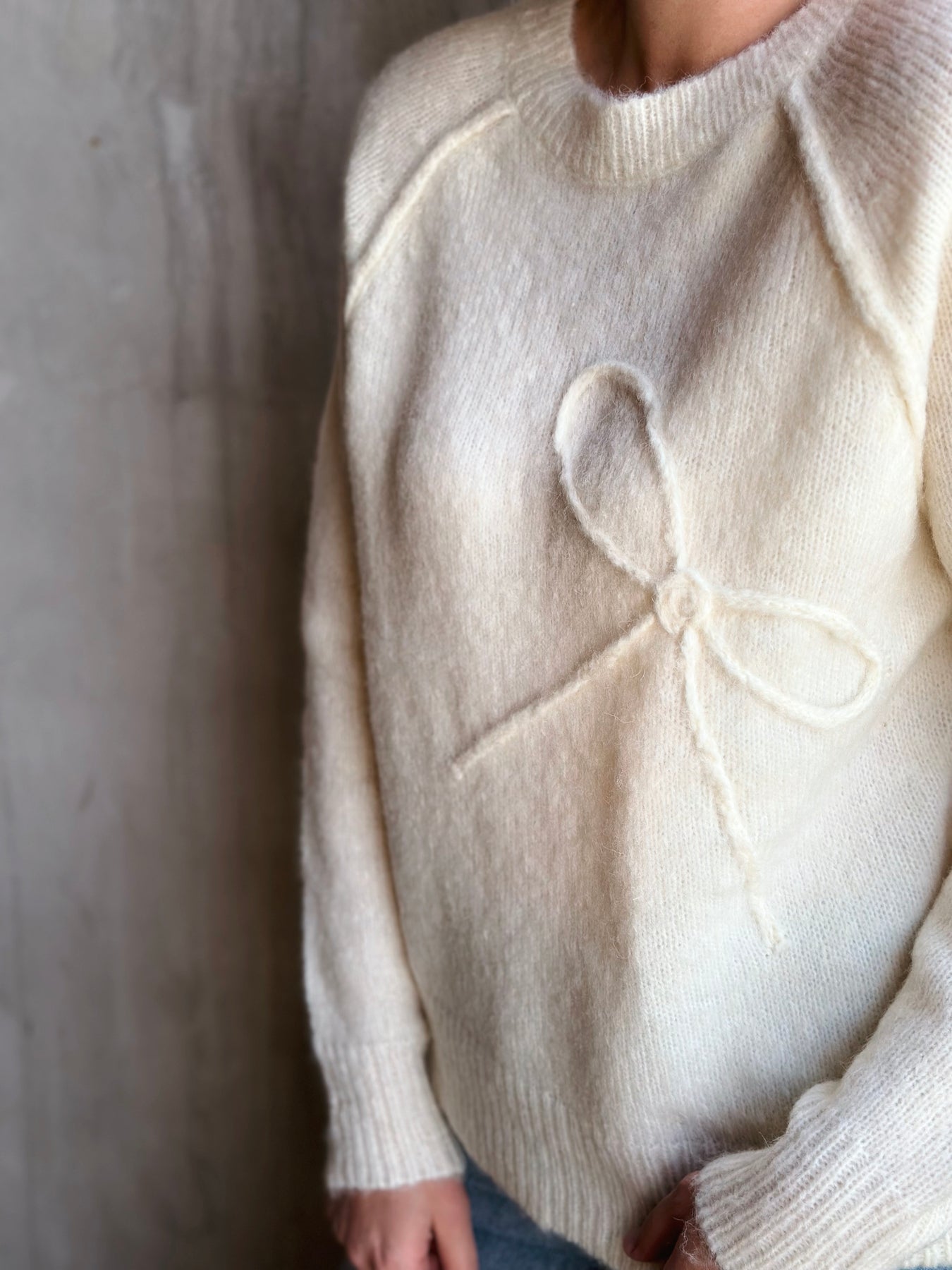 Yarn Bow Textured Crew Neck Sweater – Ivory