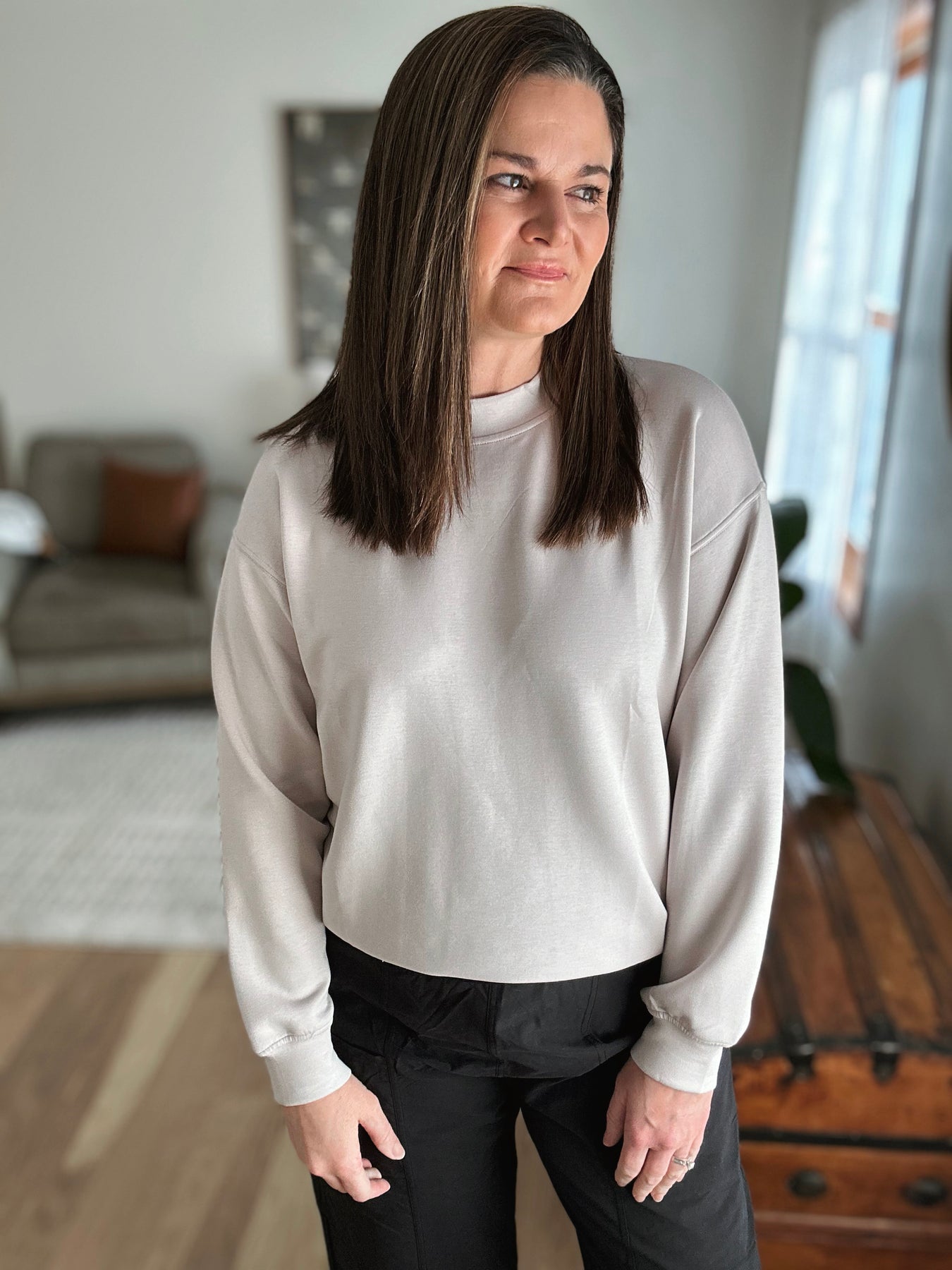 This is the kind of sweatshirt that instantly makes everything feel more relaxed. Crafted from a silky smooth, lightweight modal scuba fabric, The Easy Part Mock Neck Sweatshirt has an oversized fit that feels comfortable without feeling bulky. The mock neckline and seamed details give it a clean, elevated look, making it just as easy to wear out as it is to lounge in at home.