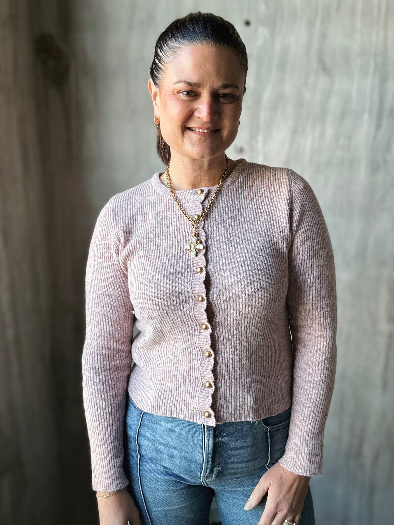 Pearl Button Ribbed Knit Cardigan – Mauve