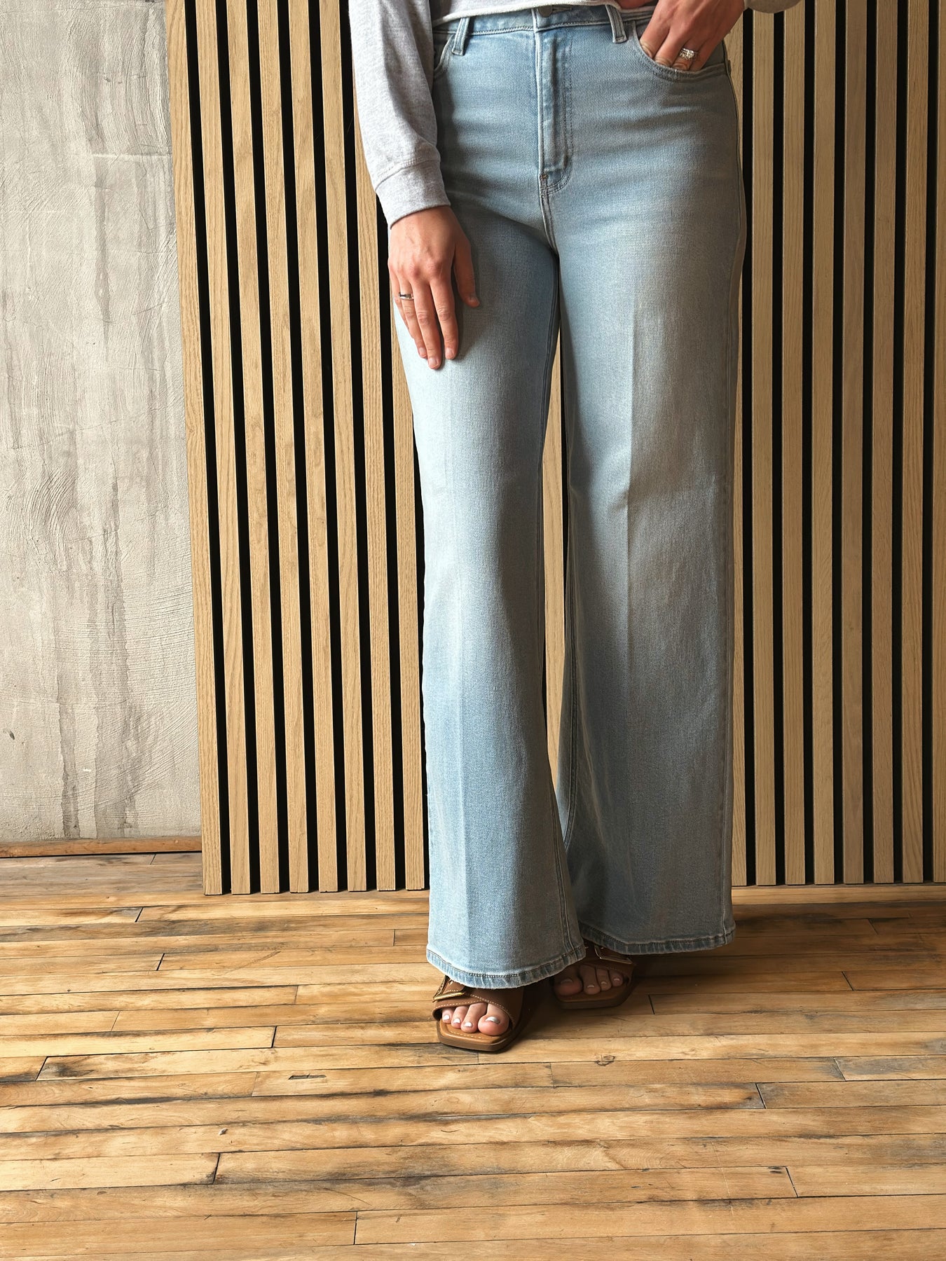 Timeless denim with a modern twist—these High-Rise Wide-Leg Jeans are your new go-to for effortless style. Designed in a light wash with the perfect amount of stretch, they offer a flattering fit through the waist and hips with a flowy wide-leg silhouette. Dress them up with heels or keep it casual with your favorite sneakers.