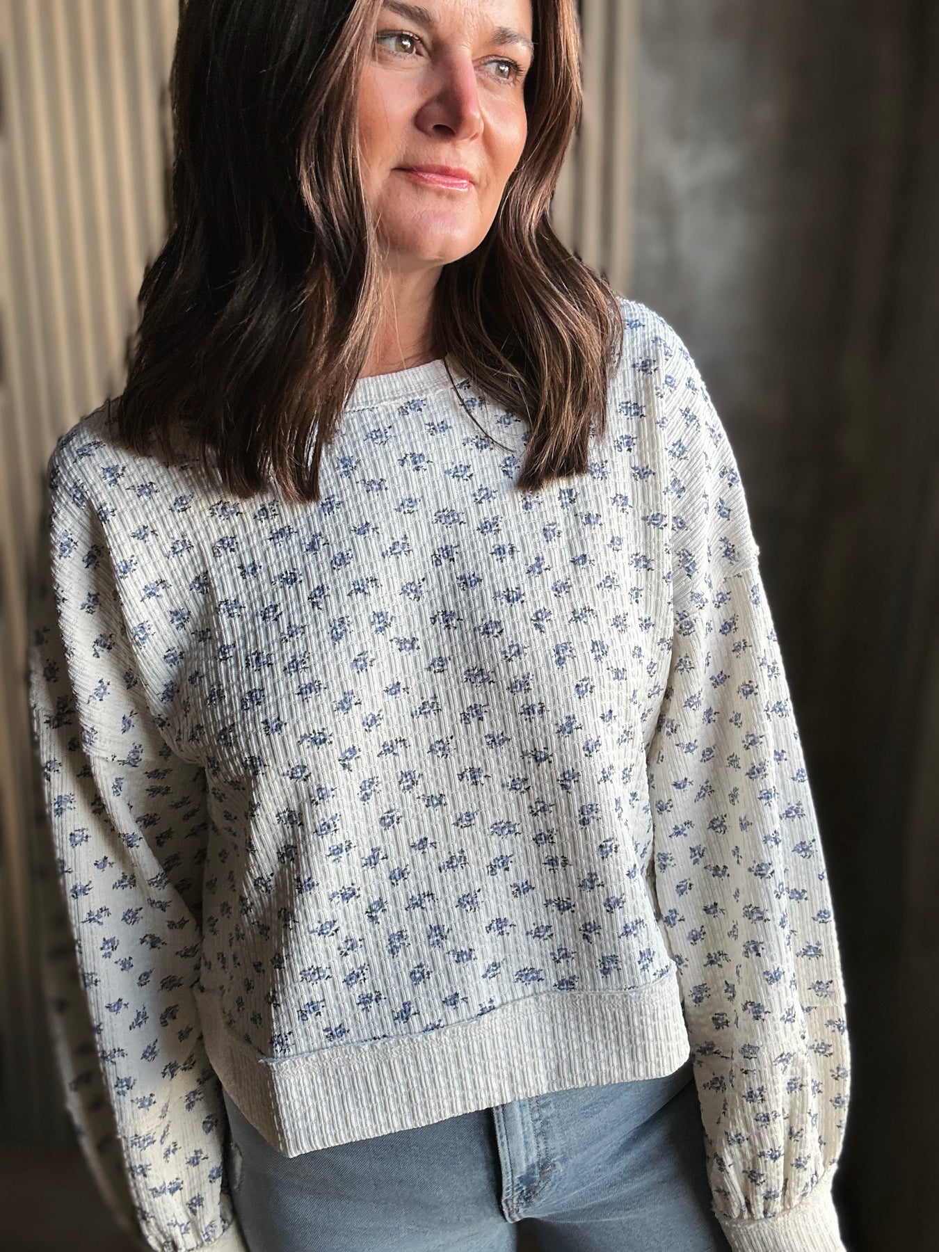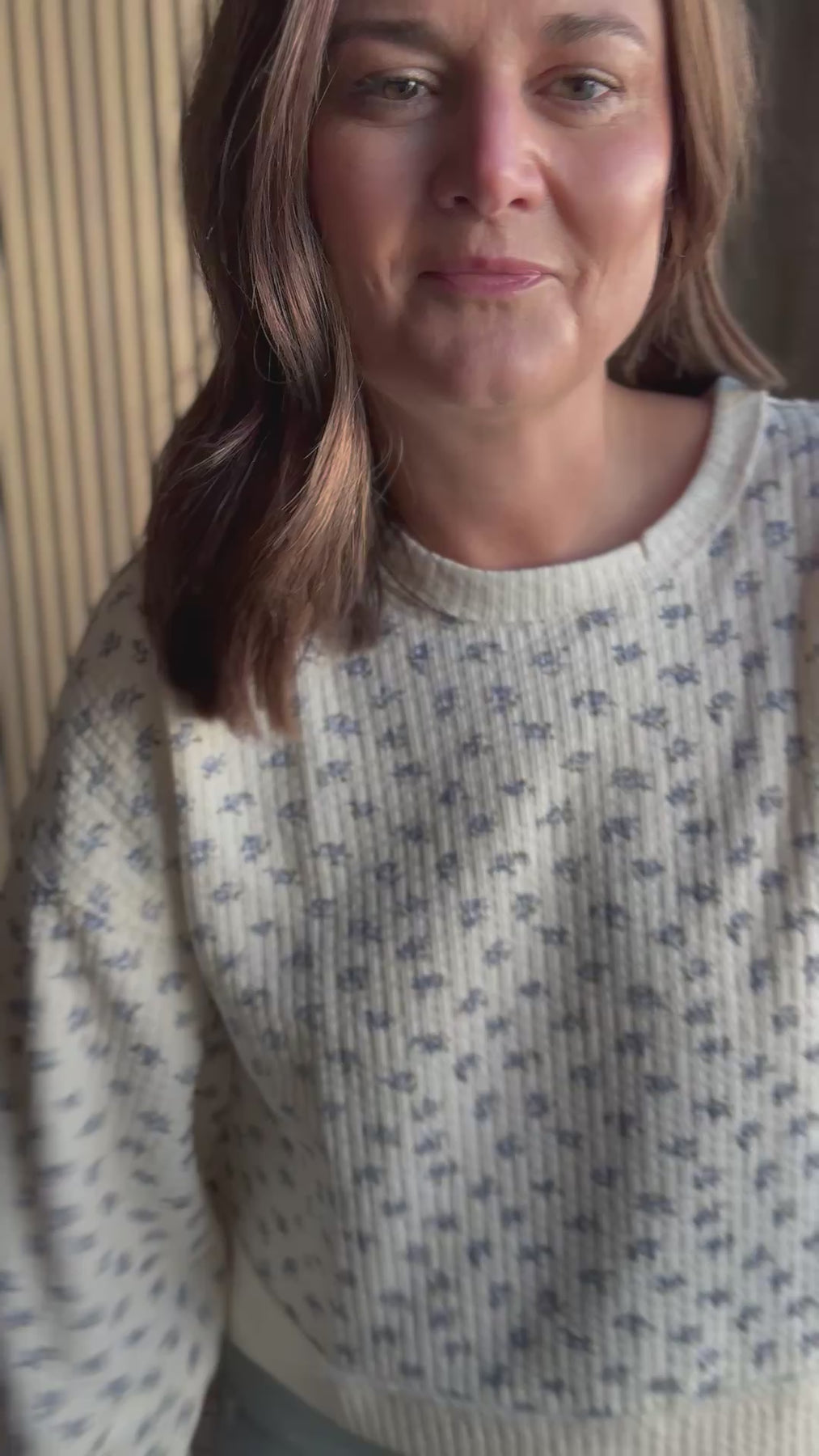 A cozy floral favorite you’ll keep reaching for. This oversized knit top combines comfort and charm with its relaxed fit and soft stretch. The cream base with blue floral print makes it the perfect way to add a pop of personality to your everyday wardrobe.