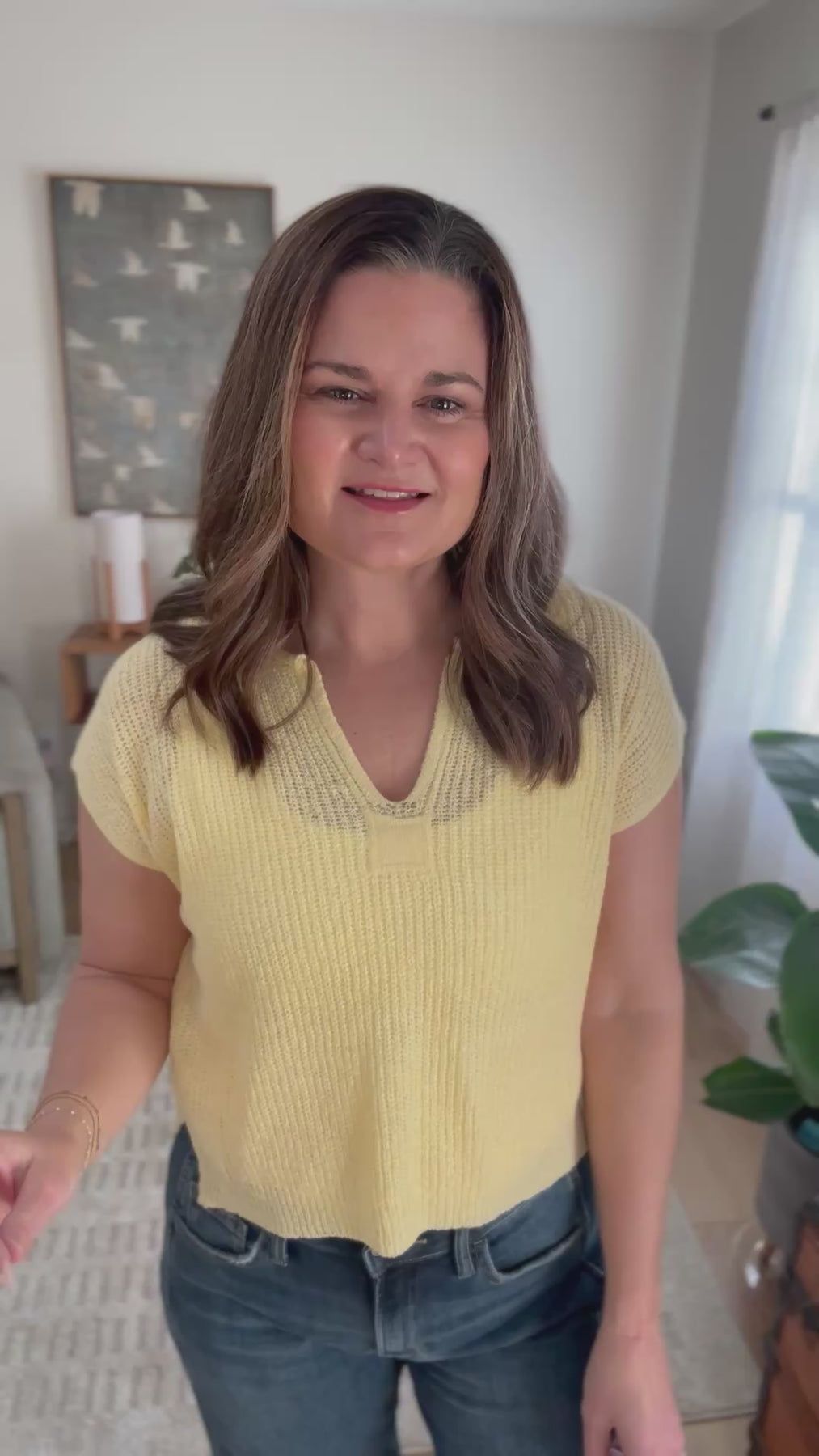 This butter yellow knit pullover sweater is soft, relaxed, and effortlessly flattering. With a split neckline and sleeveless batwing silhouette, it drapes beautifully without feeling oversized. The drop shoulder detail adds to the laid-back feel, making this an easy piece that feels modern, comfortable, and quietly elevated.